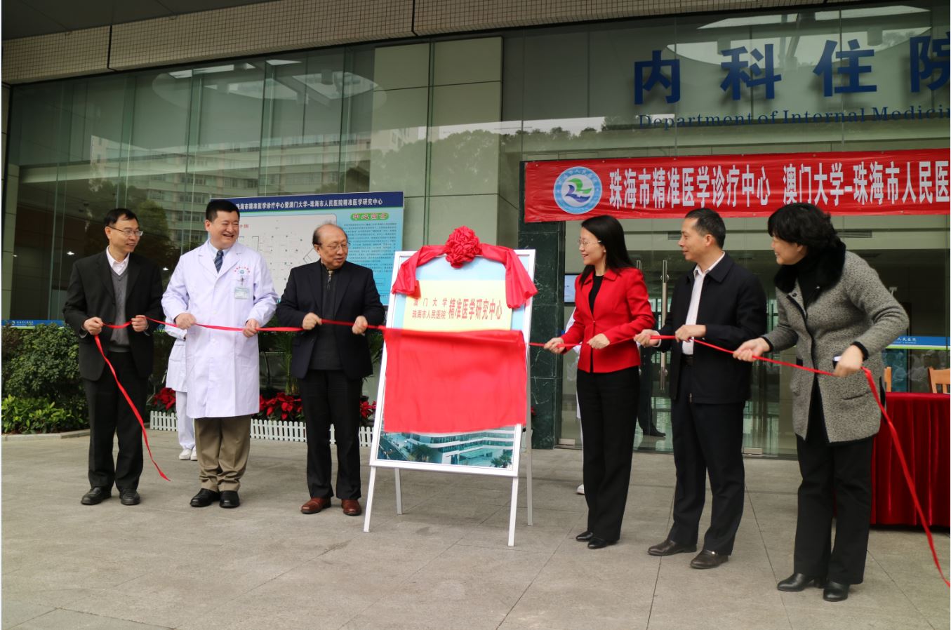 The University of Macau (UM) and the Zhuhai People’s Hospital have formed a partnership to establish a centre for precision medicine in Zhuhai city. Officiating guests at the centre’s plague unveiling ceremony included Wei Zhao, rector of UM; Chuxia Deng, dean of UM’s Faculty of Health Sciences; Long Guangyan, deputy mayor of Zhuhai city; Lu Ligong, director of Zhuhai People’s Hospital; and representatives of the Health Department of Guangdong province. For the full version, please refer to the Chinese version. Source: Faculty of Health Sciences Media Contact Information: Communications Office, University of Macau Albee Lei Tel:(853) 88228004 Kelvin U Tel:(853) 88224322 Email:prs.media@um.edu.mo