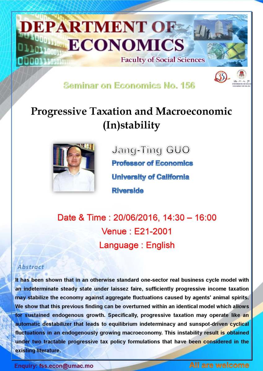 社會科學學院經濟學系講座 - Jang-Ting GUO教授 |
